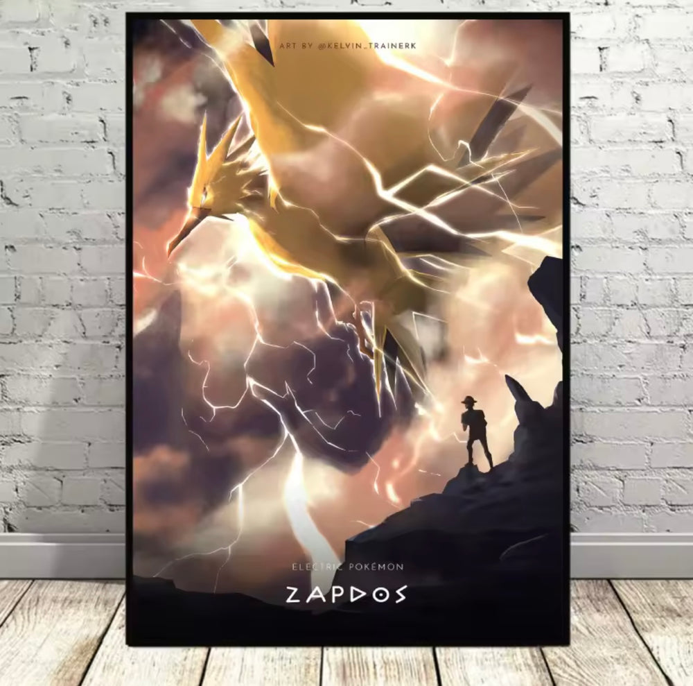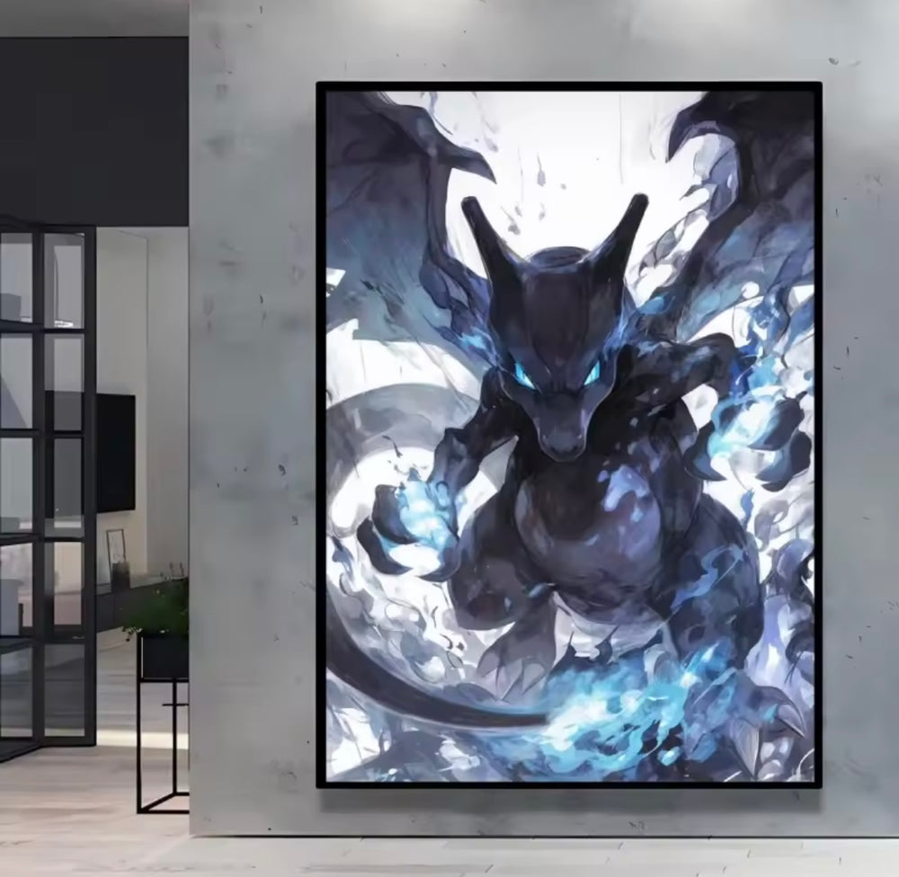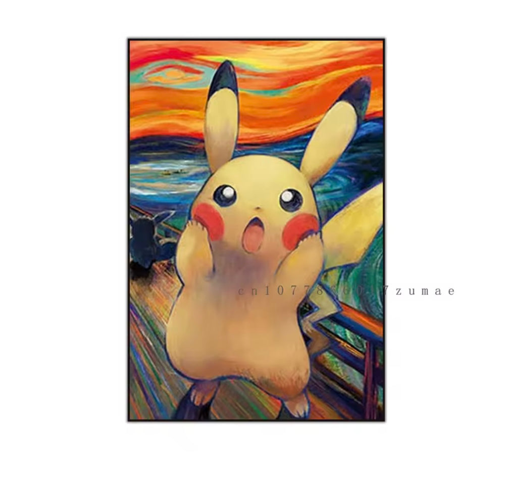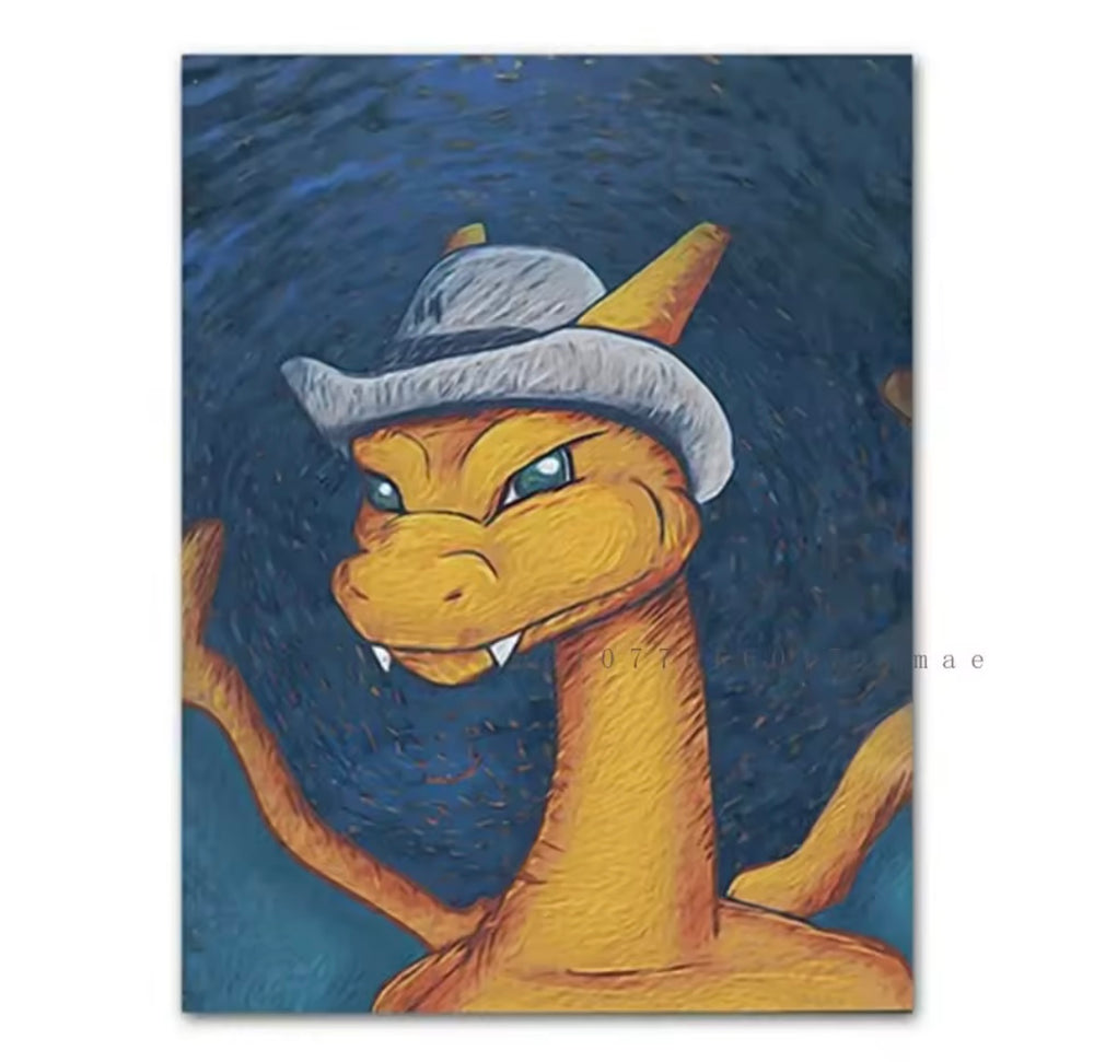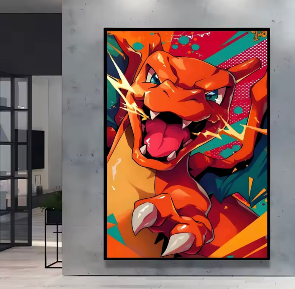A range of Pokemon themed canvas artworks.