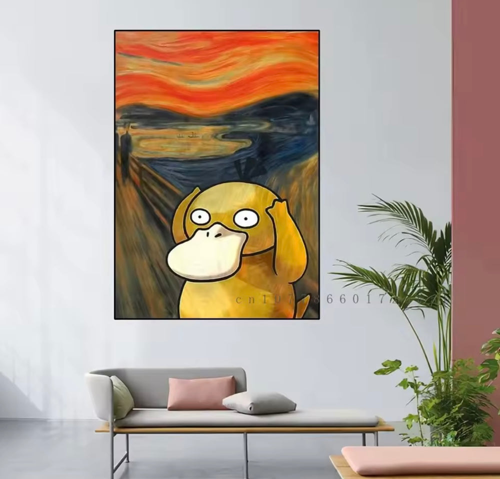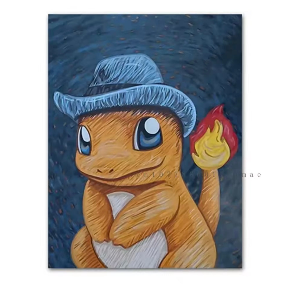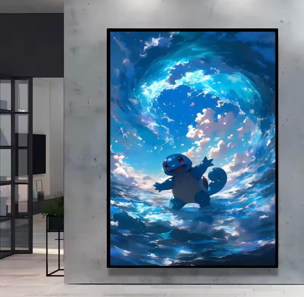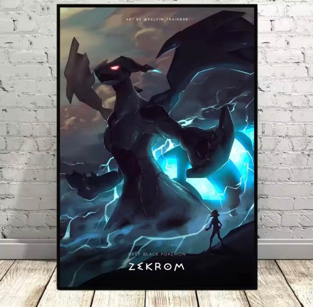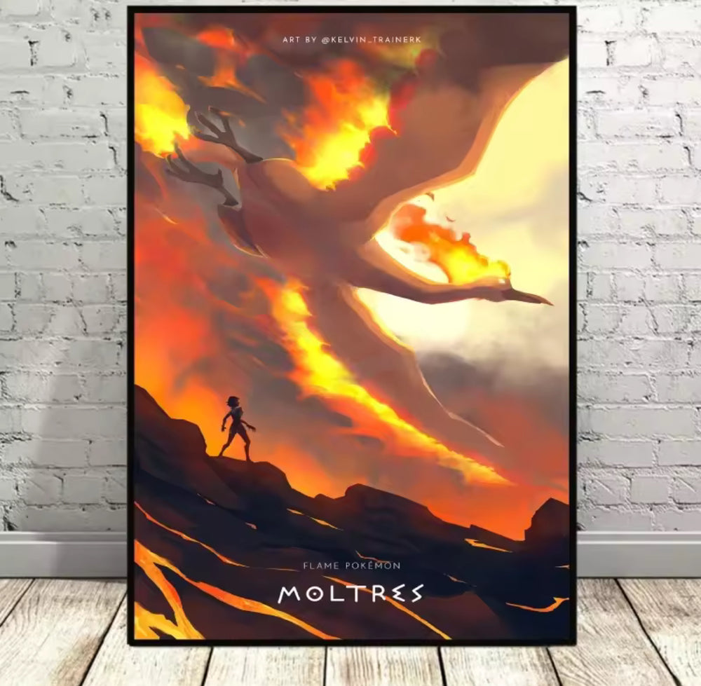 A range of Pokemon themed canvas artworks.